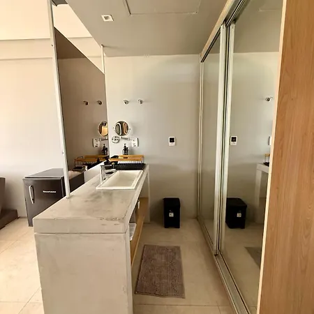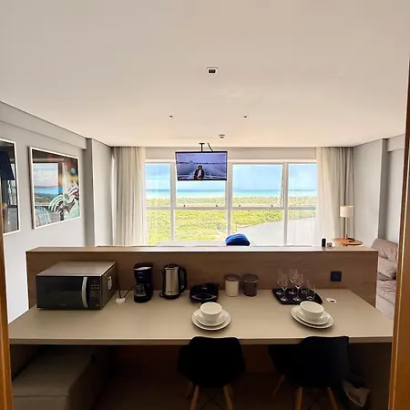 A Bugan Premium - Vista Mar Incrivel Apartman vendégeinek konyhát kínál, kilátással a tengerre.